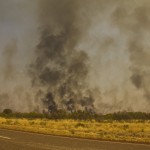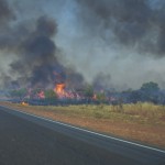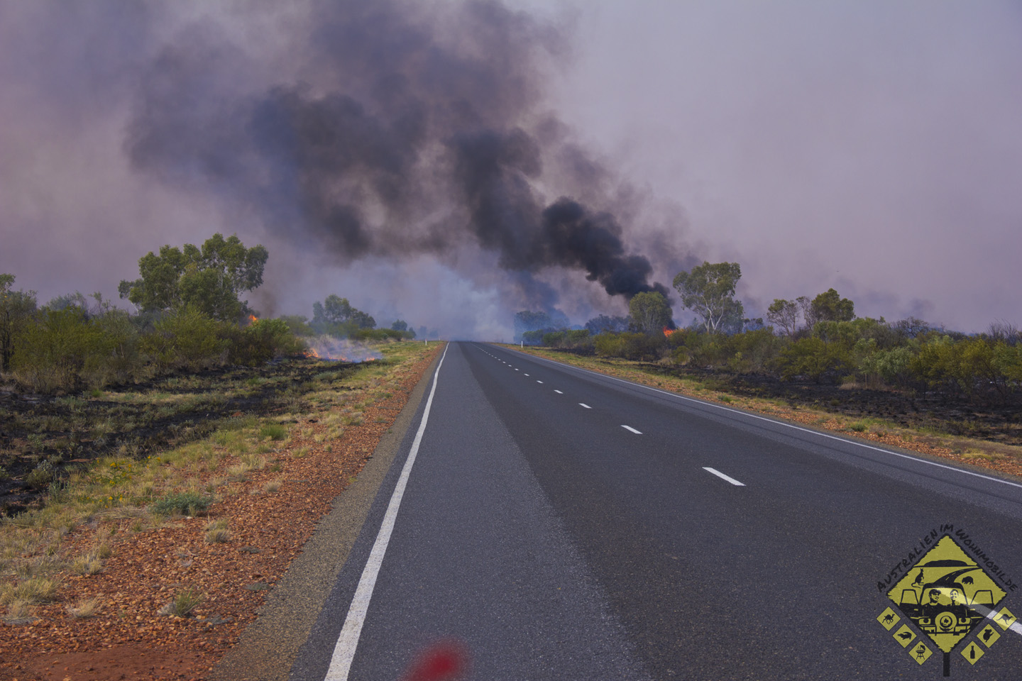 Auf dem Weg zu den Devil’s Marbles mussten wir erstmal – wortwörtlich durch’s Feuer fahren.