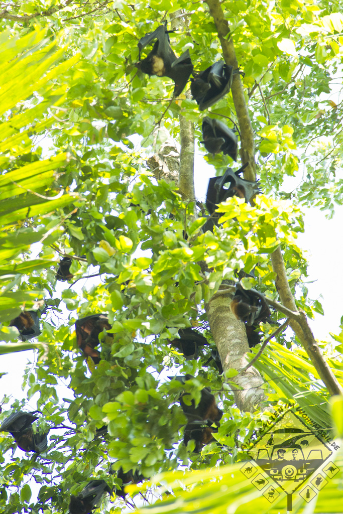 Ach: Und Flughunde sind Vegetarier. Aber trotzdem irgendwie komisch, wenn sie in großen Flugverbänden über dem Wohnmobil kreisen!