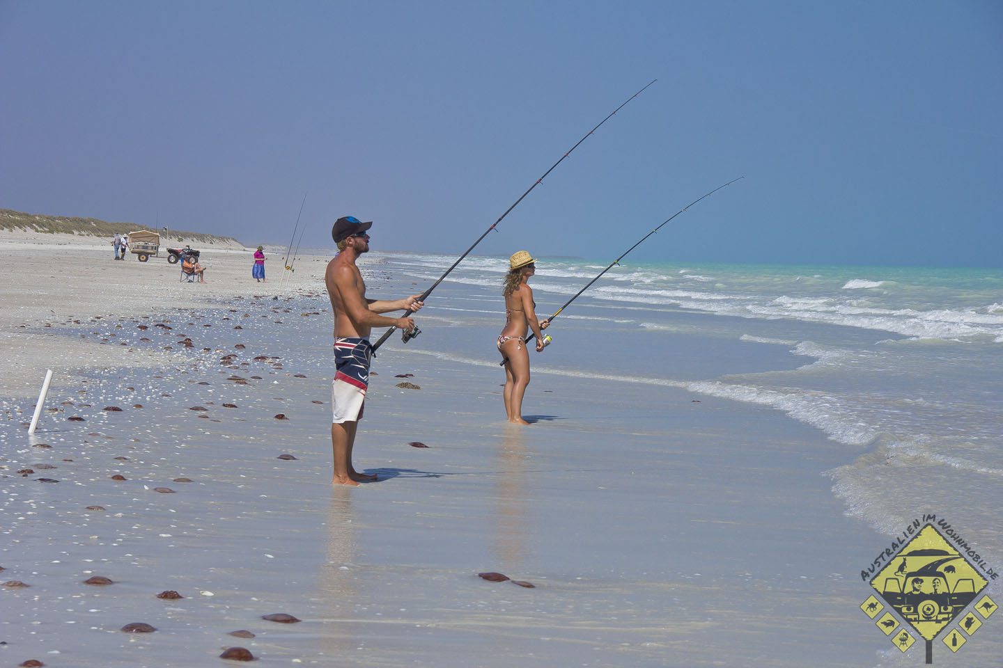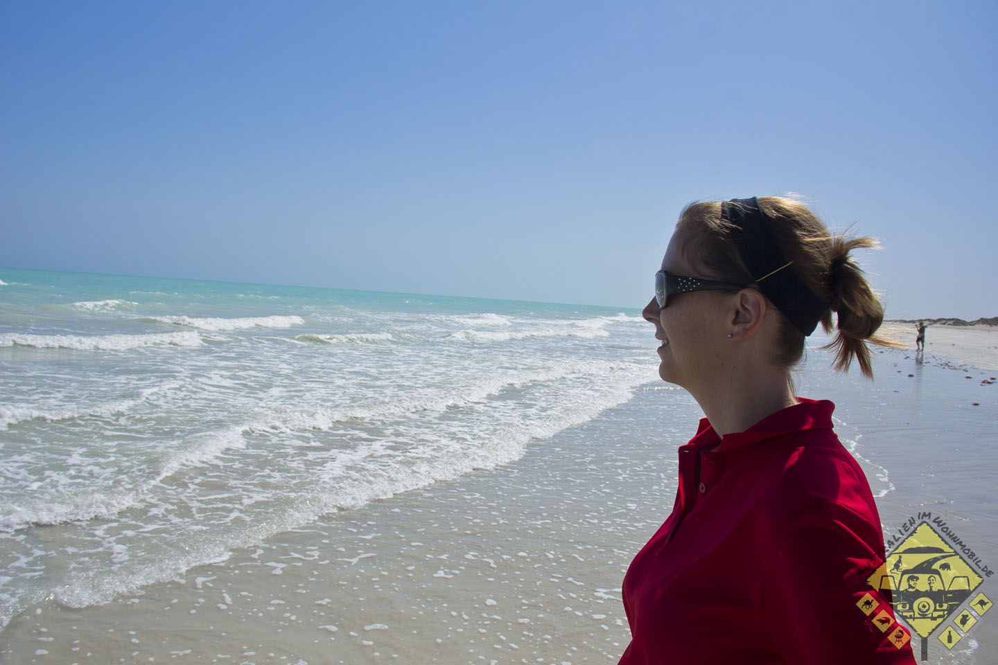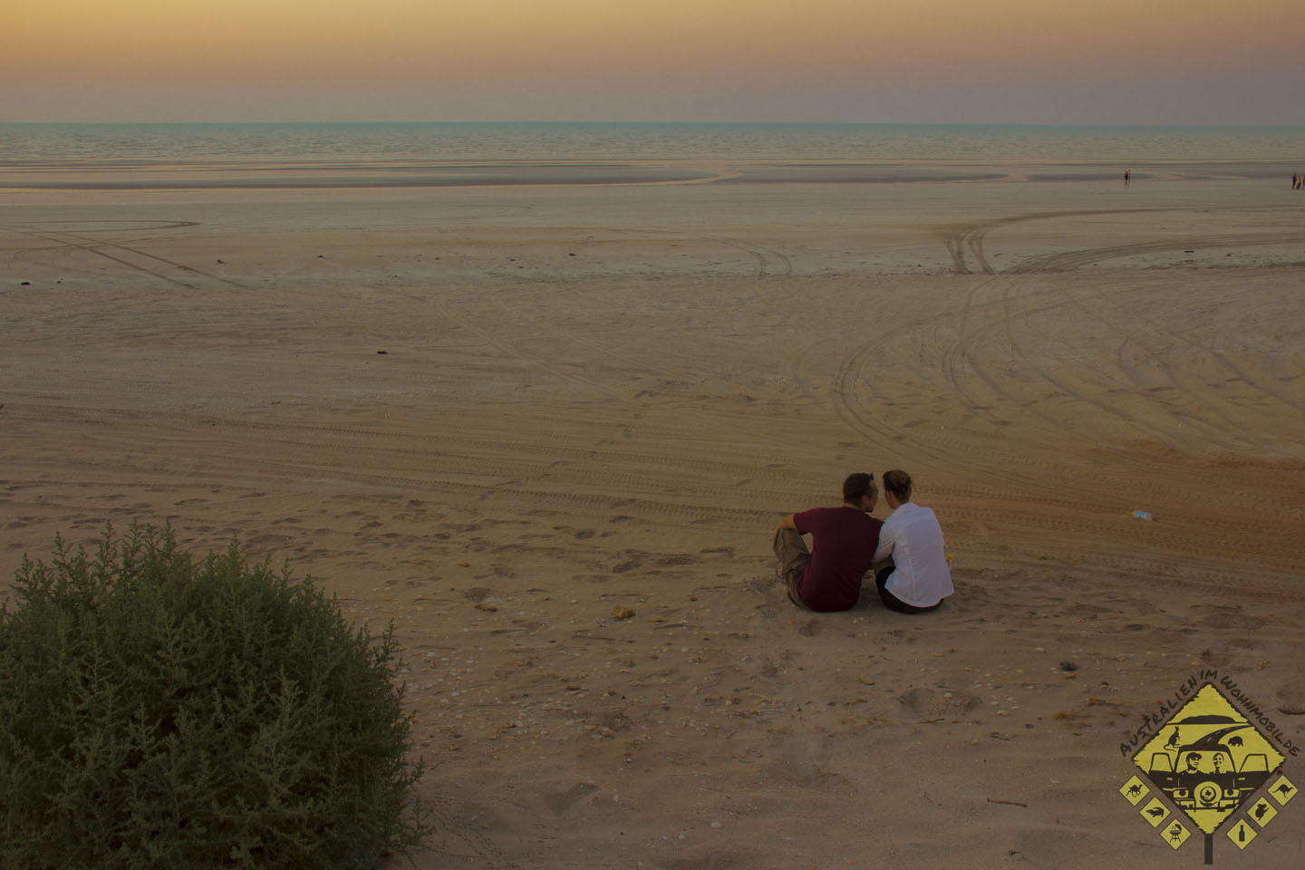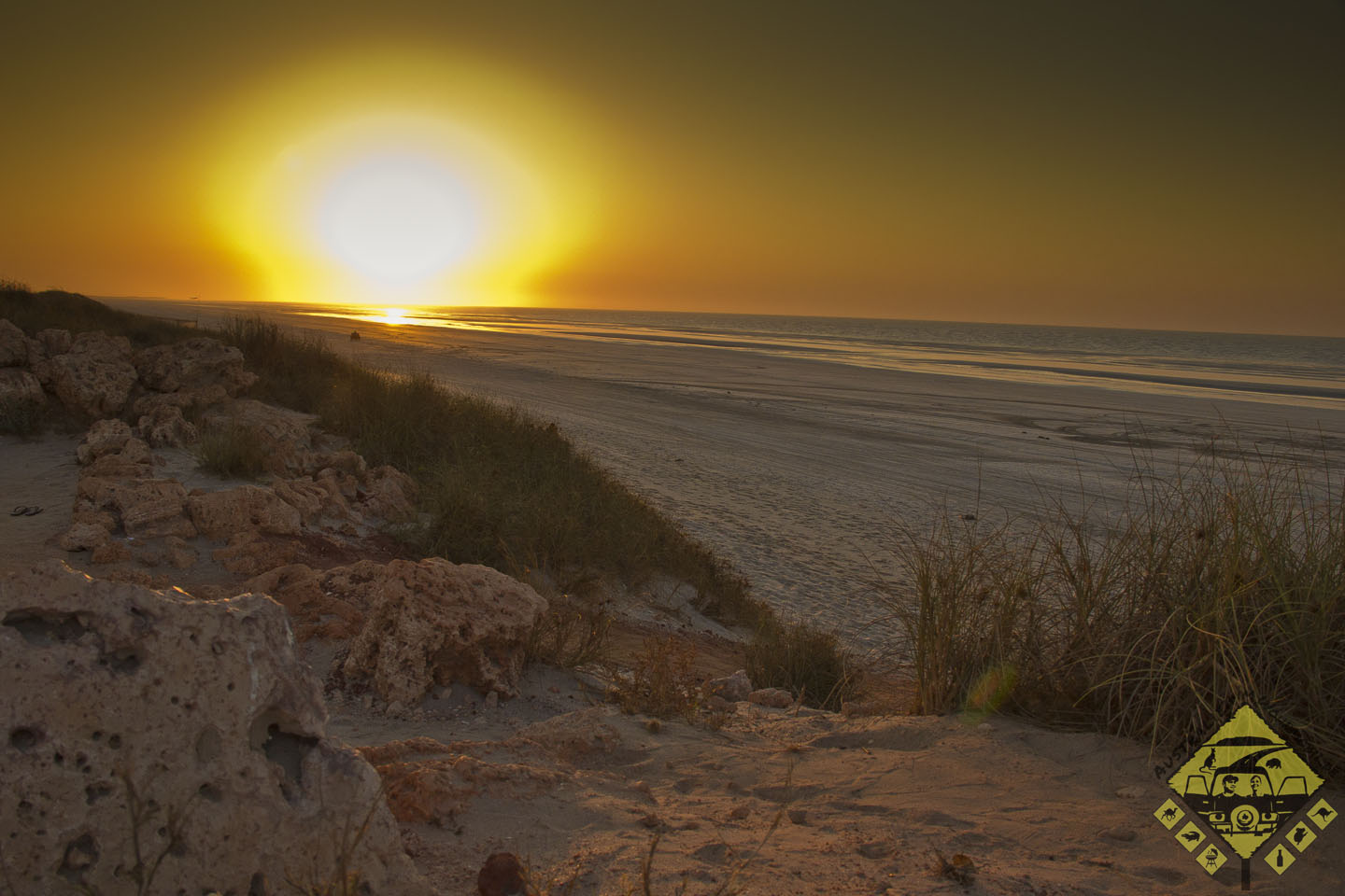 Am besten: Musik an, Red Bull in die Hand und meditatives Bleifußfahren.ABER: Auf jeden Fall zum 80 Mile Beach.Man fährt vom Highway eine halbe Stunde Dirt Road zum einzigen Campingplatz im Umkreis, der Strandzugang hat. Von unserem Camper aus war der Strand 30 Meter entfernt – tagsüber azurblaues Wasser hinter weißem Sandstrand. Dauercamper fahren mit ihren Quads oder fast schrottreifen Jeeps zum Fischen. Nachts kommen die Schildkröten und stopfen ihre Eier in den Sand.Und wenn dann noch Neumond ist habt Ihr ne Chance auf richtig schönen Sternenhimmel.Es sei denn, die Campingplatzjugend geht leicht alkoholisiert auf Krabbenjagd im Meer.Aber: Seht selbst!80 Mile Beach, Western Australia: Absolute Empfehlung!