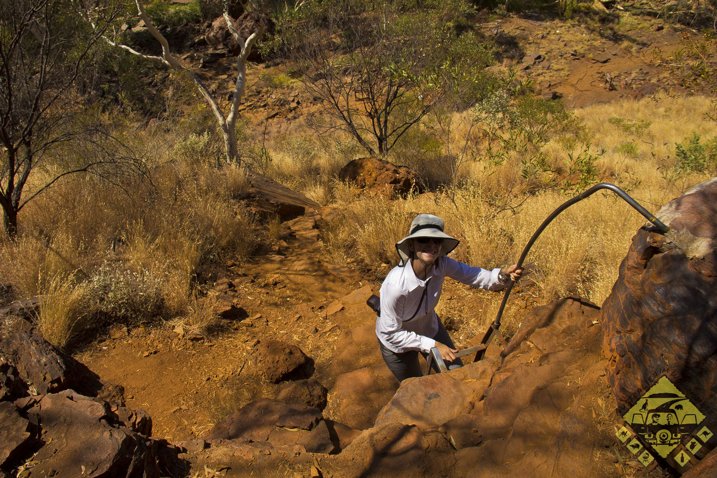 Die Wanderungen im Karijini National Park sind mit Schwierigkeitsstufen versehen. Class 1 kann man quasi auf einem Bein hüpfend locker schaffen. Für Class 6 braucht man Bergsteigererfahrung und -ausrüstung.