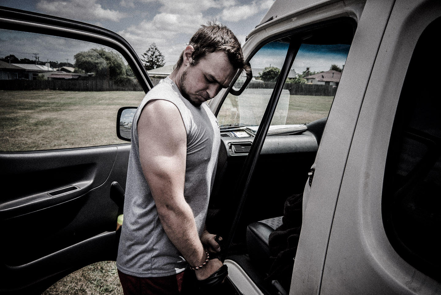 Der wirkliche König der Armmuskeln. Hier braucht man was zum Ziehen – z.B. den Griff über der Beifahrertür.