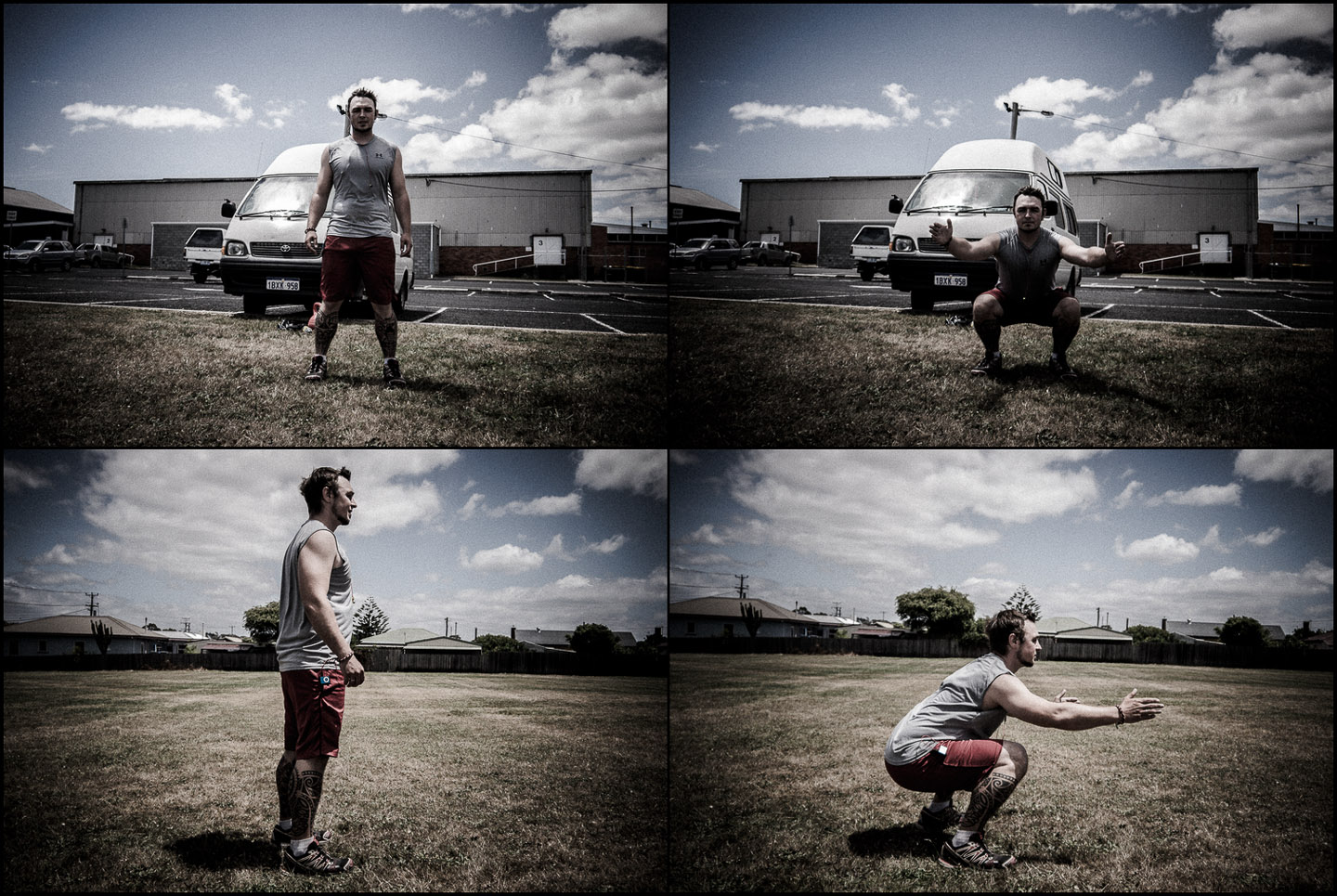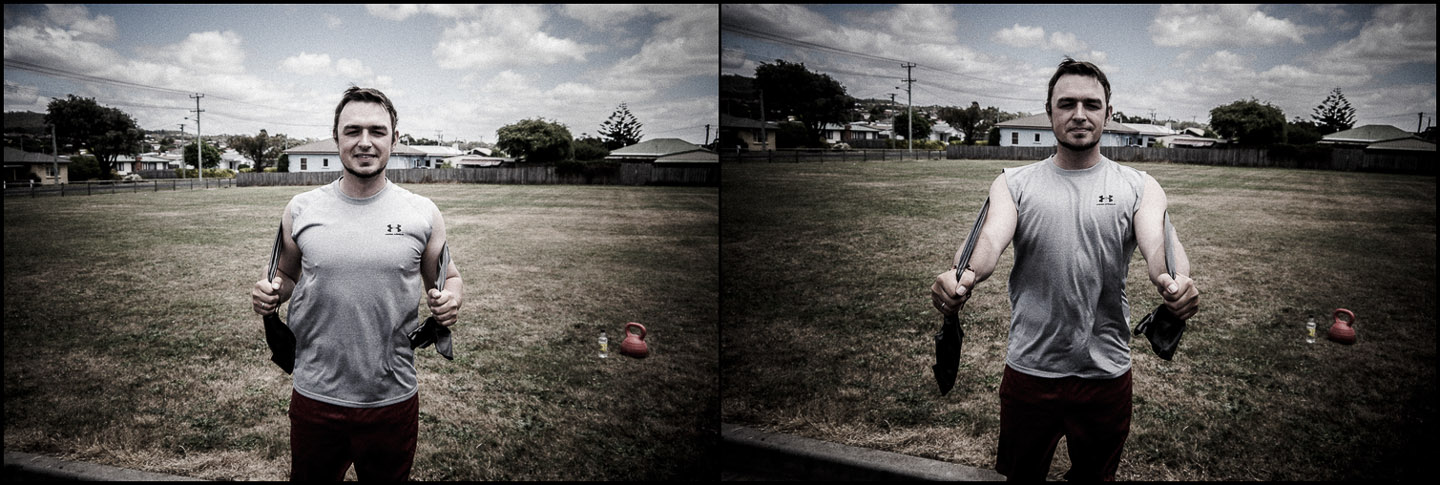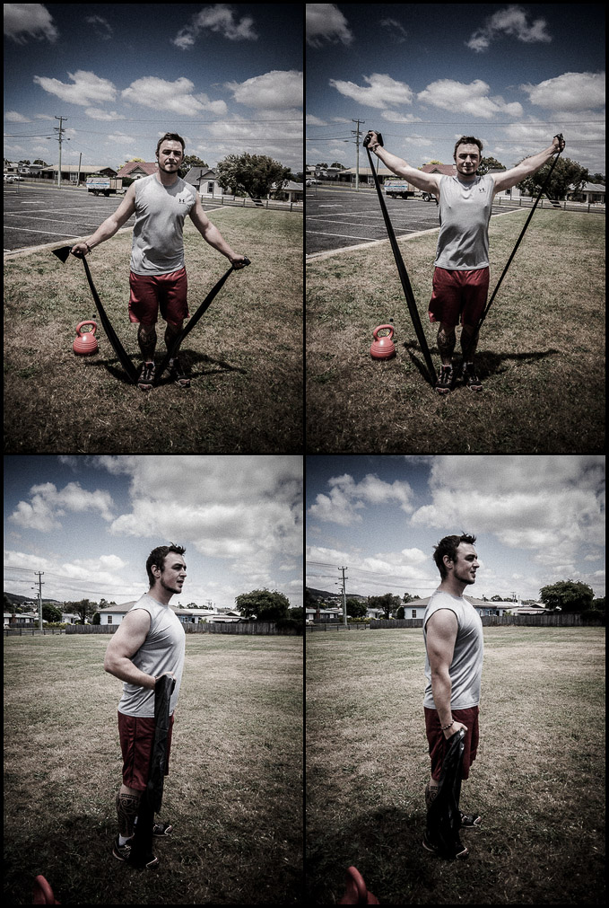 Wir kaufen immer die härtesten Bänder, die verfügbar sind. Bei der Kettlebell haben wir hier in Australien leider nur eine 12kg schwere gefunden – 16 oder 18 währen mir lieber gewesen.Aufwärmen