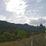 Noch eine Graswolke kommt vom Nebentisch herüber geweht. Scheint ja recht akzeptiert zu sein hier. Auf dem Weg hierher kamen wir durch Nimbin, die berühmte Hippie-Enklave. Stundenlang wand sich die Landstraße durch grüne Täler, überquerte alle paar Minuten einen kleinen Fluss oder ging über steile Berge und zurück in steile Abhänge, dass man sich vorkam wie in der Achterbahn. Den Hippie-Einfluss merkt man schon daran, dass die Schlaglöcher auf der Landstraße kurz vor Nimbin mit Neonsprühfarbe zu psychedelischen Tausendfüsslern umlackiert wurden.